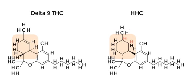 ברמה הכימית,, HHC  הינו THC  ללא קשרים כפולים במבנה שלו. ב- HHC, כל הקשרים הכפולים נשברו והוחלפו במימן (הידרוגנציה).